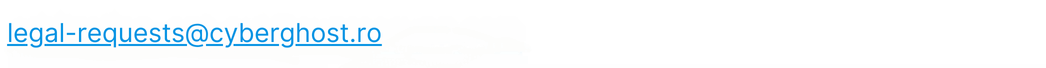 Rightholders, who draw the conclusions that, by means of the contents downloaded via CyberGhost Products, their legal interest, for e.g. the intellectual property, is violated, can contact our Copyright representatives (copyright@cyberghost.ro) so that we can prevent the further access to such content.