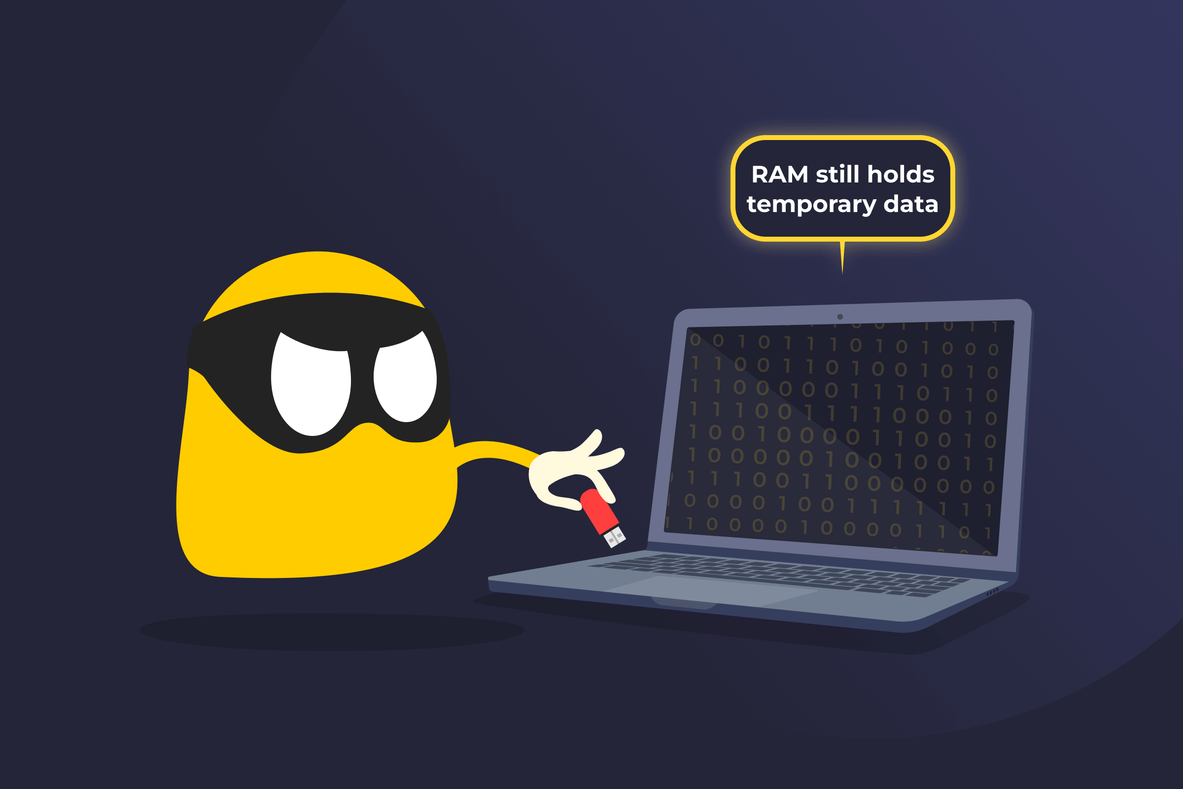Although RAM is designed to store only temporary data, it doesn’t always clear instantly when the power is cut. During this brief window, attackers may be able to recover information that was previously stored in memory, including encryption keys, passwords, and more.