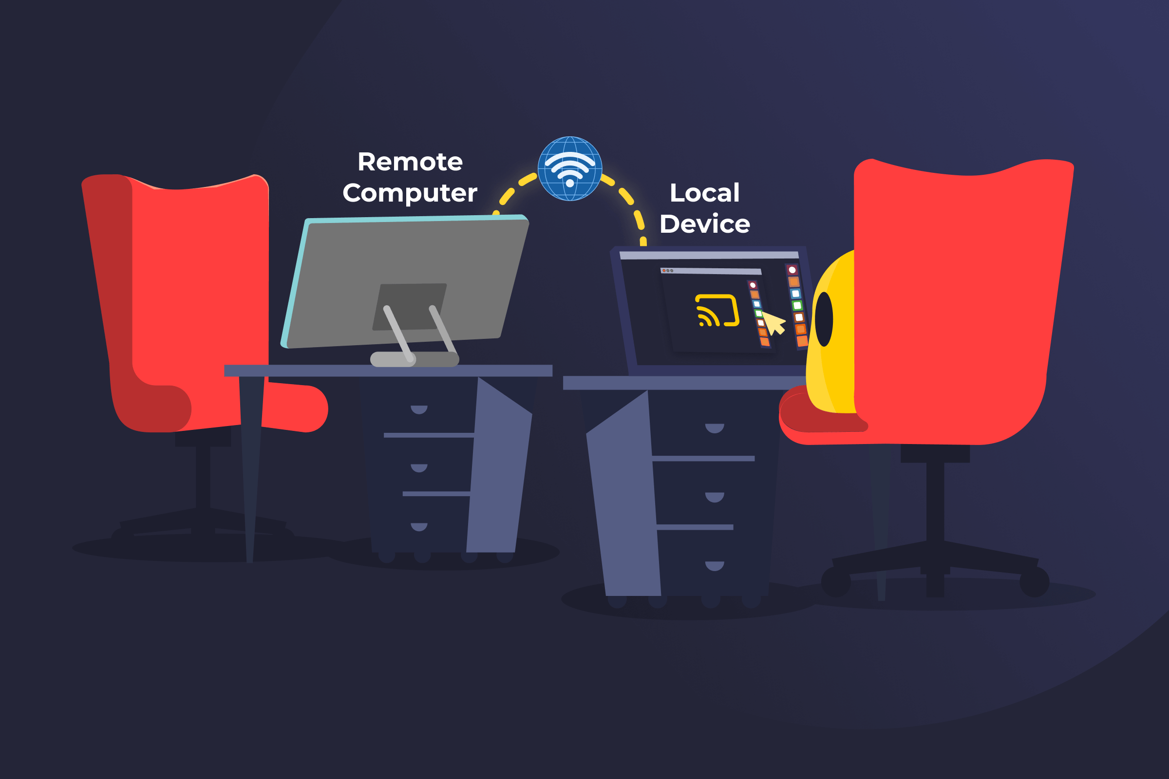 - The remote screen is shared: After connection, the remote computer streams visual screen data to the controlling device.