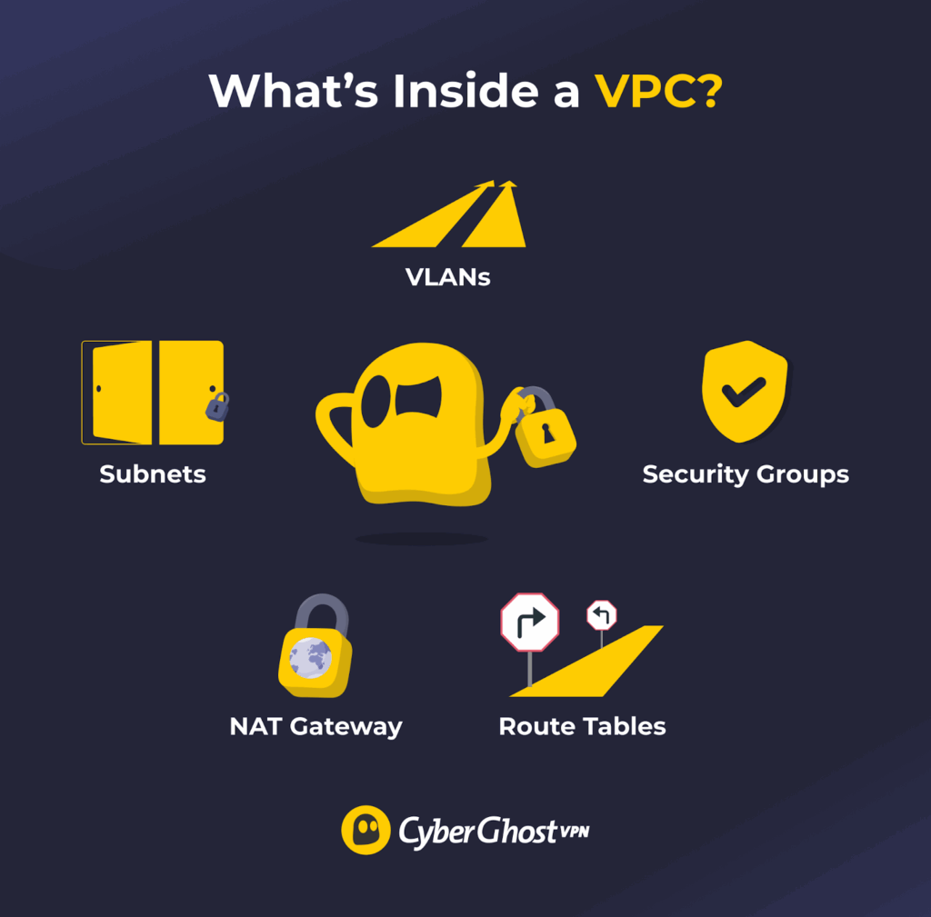 - VLANs (Virtual Local Area Networks): Lanes that keep your network traffic separate and secure, allowing connected devices to communicate directly without clashes. In a VPC, you don’t typically manage VLANs; they’re handled by the cloud provider behind the scenes.